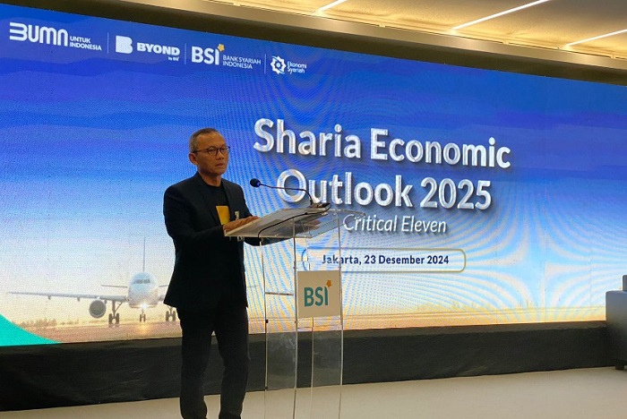 Direktur Treasury & International Banking BSI Ari Rizaldi dalam acara Sharia Economic Outlook 2025 di Gedung BSI The Tower, Senin (23/12/2024). (int)